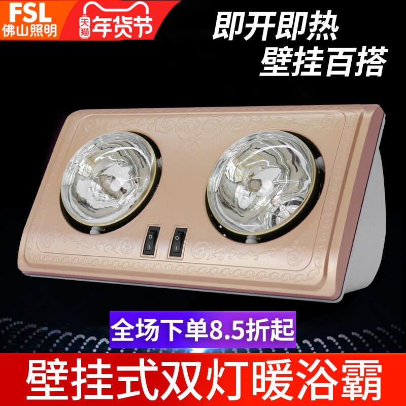 佛山照明浴霸灯暖壁挂式取暖器红外加热两灯暖浴室卫生间速暖浴霸
