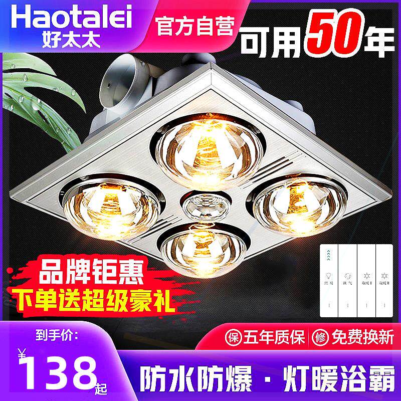 荣事达灯暖壁挂式浴霸排气扇照明集成吊顶卫生间浴室一体取暖灯泡