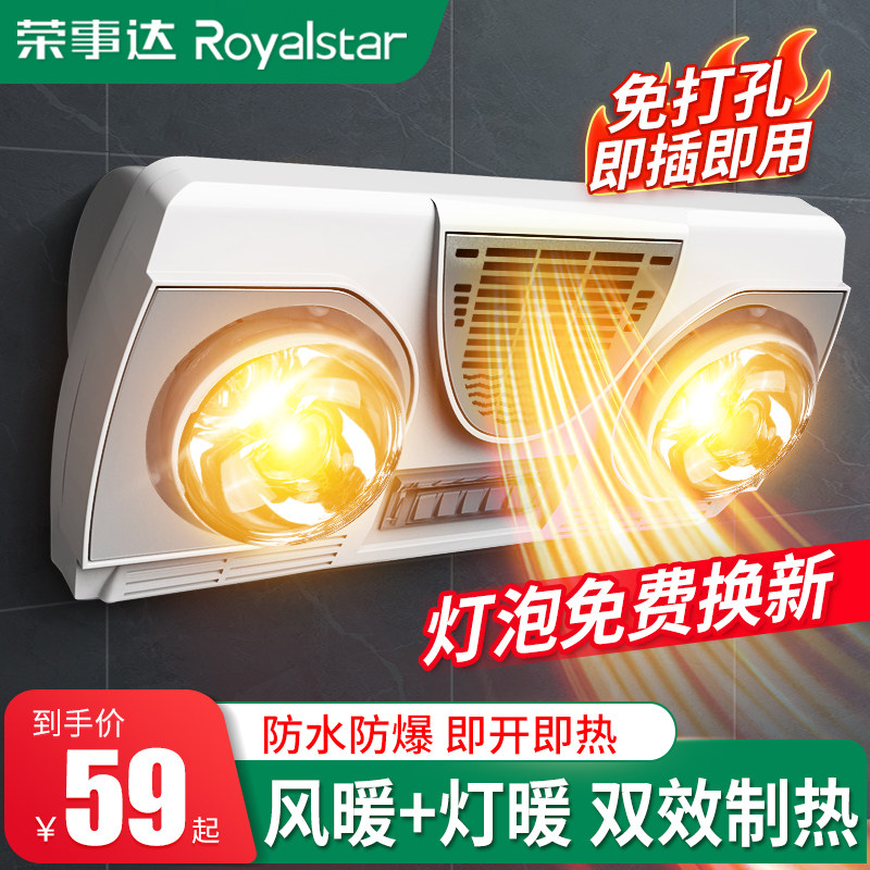 荣事达壁挂式浴霸卫生间浴室取暖器浴室家用老式灯暖浴霸免打孔