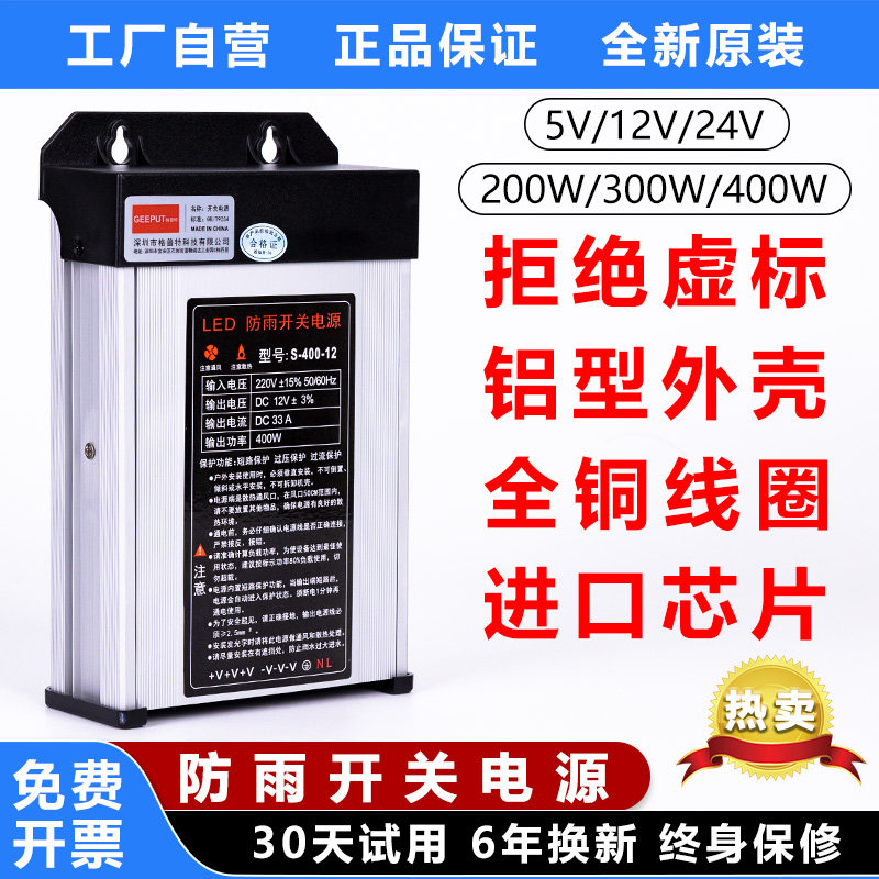 格普特LED防雨开关电源12V24V/400W户外发光字招牌广告灯箱变压器