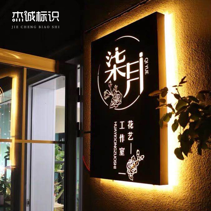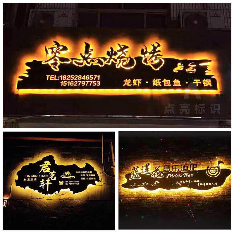 民宿门牌招牌广告牌定制镂空灯箱不锈钢发光字霓虹灯箱创意背景墙
