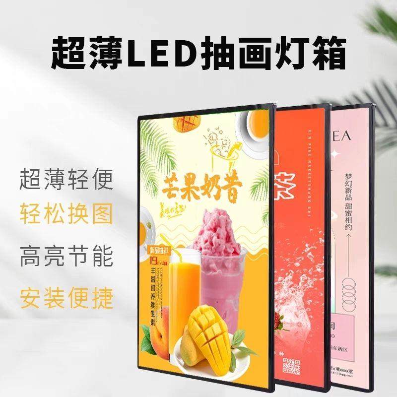 超薄抽画灯箱广告牌挂墙式钢化玻璃室内招牌定做发光菜单展示