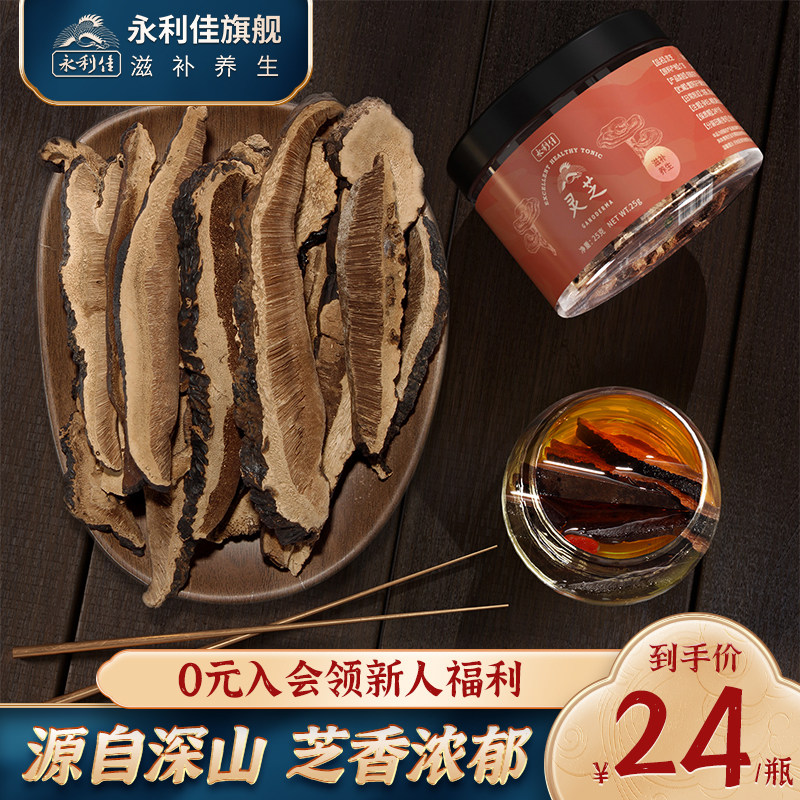 永利佳黑灵芝片干货25克泡水切片整朵切片泡水煲汤中药材灵芝片