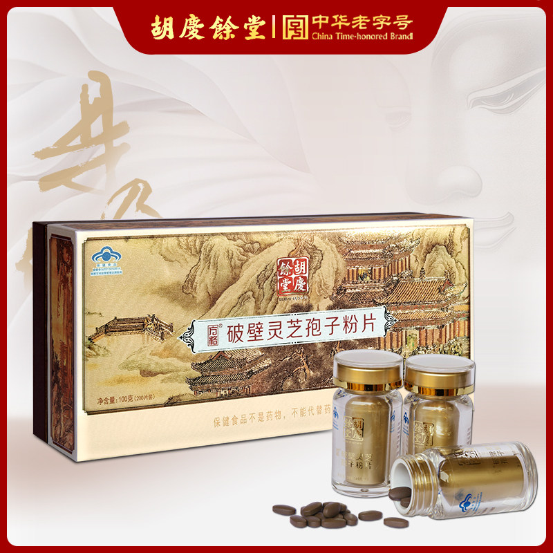 胡庆余堂官方 方格牌破壁灵芝孢子粉片 100克/盒 含5小瓶共200片