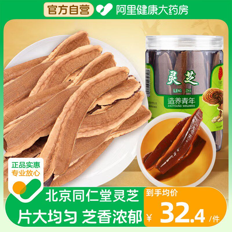 北京同仁堂灵芝300g整枝整朵灵芝片赤灵芝泡水泡酒芝礼盒可打粉
