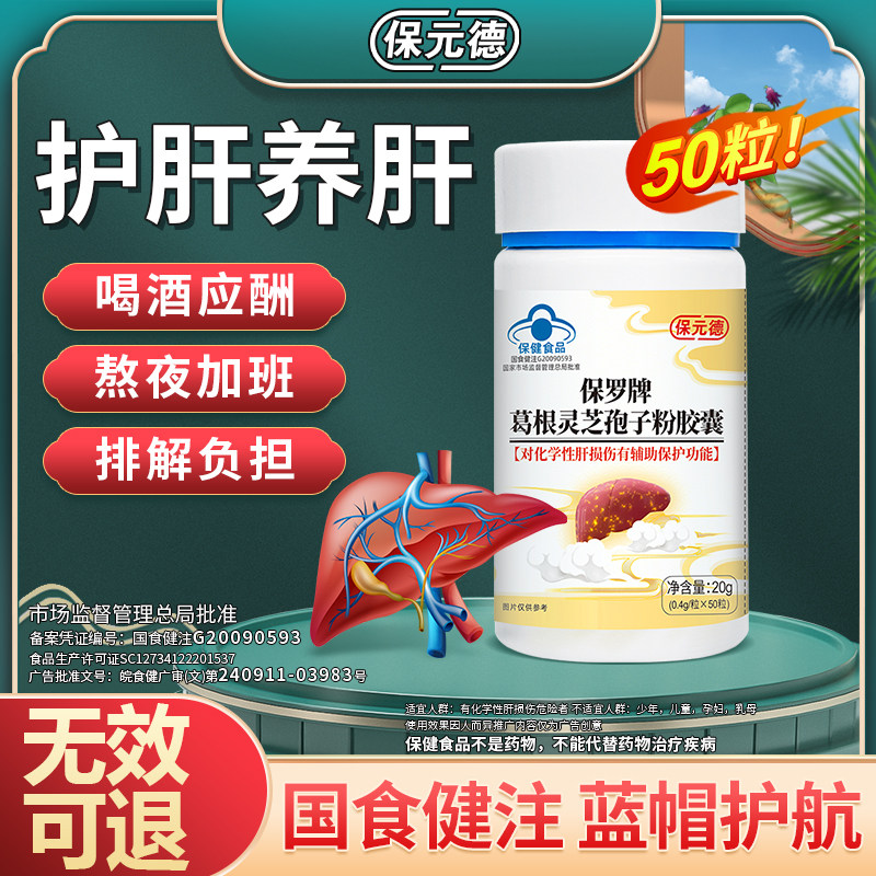 【50粒】保元德保罗牌葛根灵芝孢子粉胶囊肝养护片官方旗舰店正品