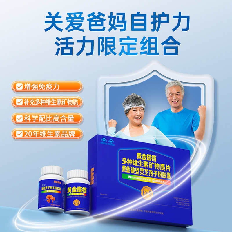 买2送氨基酸礼盒】黄金搭档灵芝孢子粉+复合维生素矿物质片礼盒
