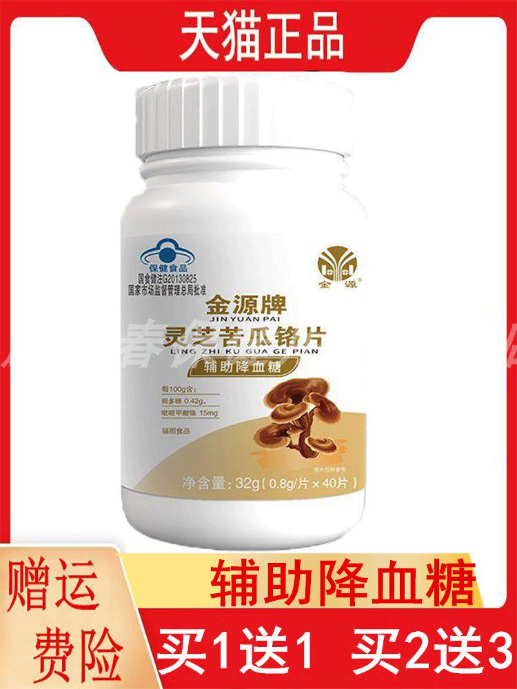 血糖偏高者适宜】正品金源牌灵芝苦瓜铬片辅助降血糖40粒/瓶 安徽