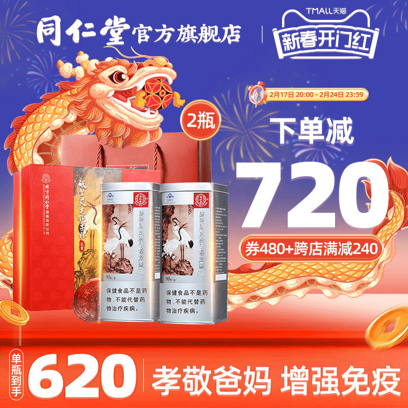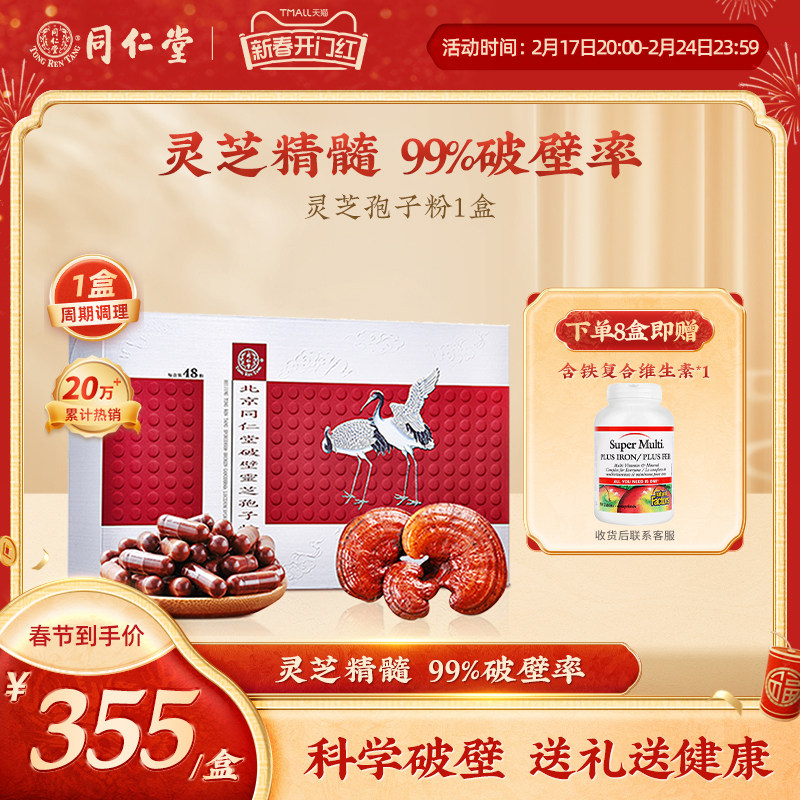 同仁堂有机破壁灵芝孢子粉增强免疫力官方旗舰店新年货礼盒送长辈