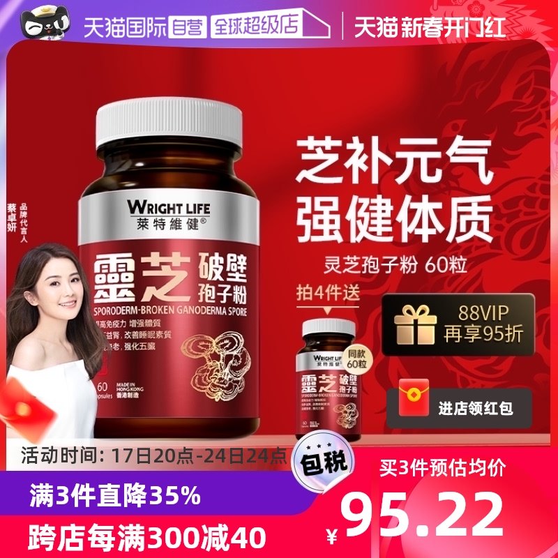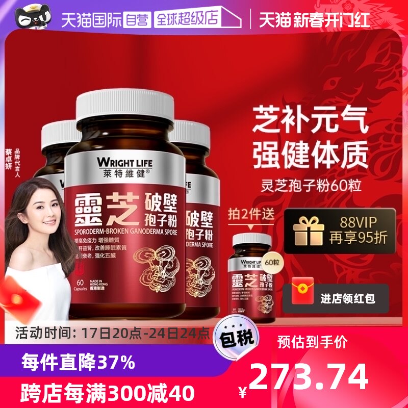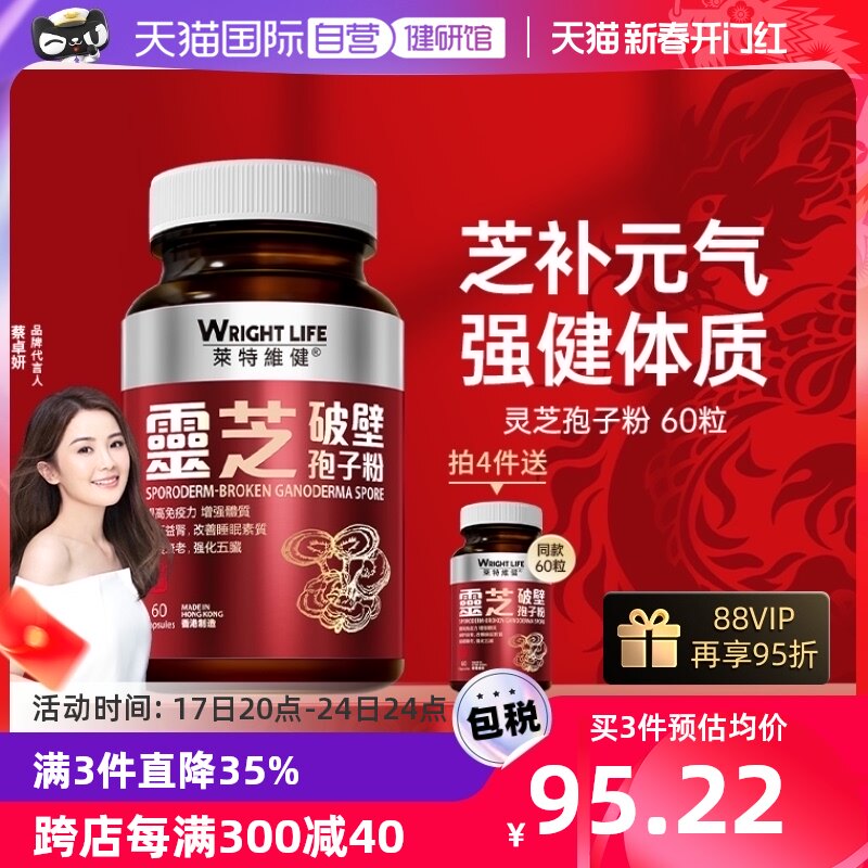 【自营】香港莱特维健灵芝破壁孢子粉胶囊增原装正品强免疫力60粒