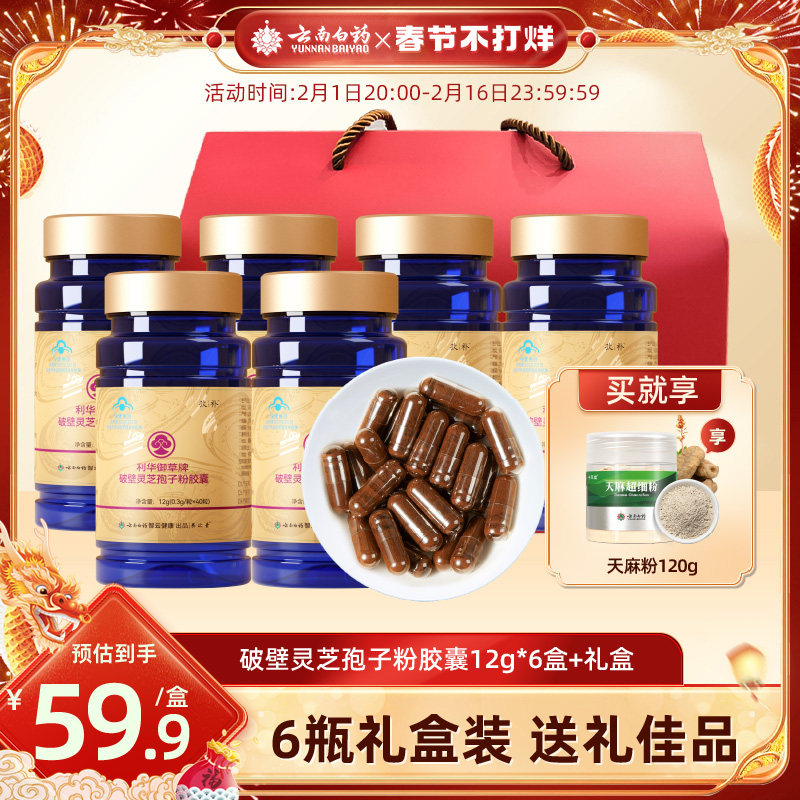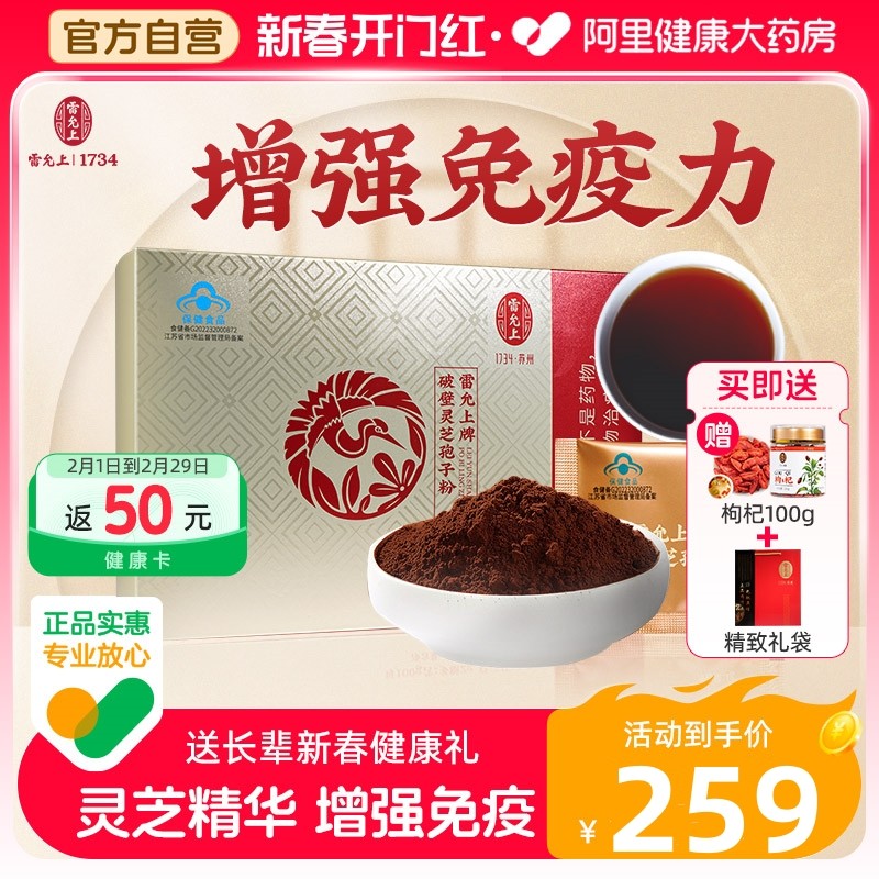 雷允上破壁灵芝孢子粉正品官方旗舰店长白山高三萜60g新春礼盒