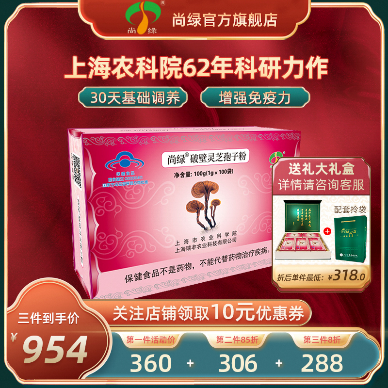 尚绿 上海农科院灵芝破壁灵芝孢子粉1g*100灵芝粉官方正品