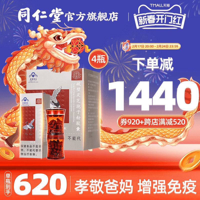 同仁堂破壁灵芝孢子粉胶囊正品袍子粉增强免疫力官方旗舰店4瓶装
