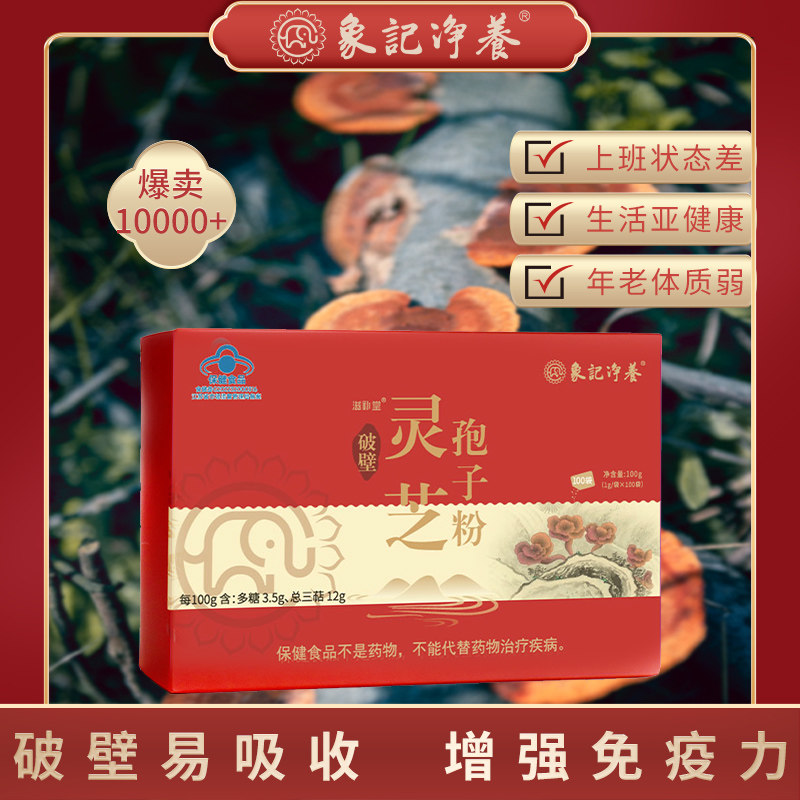 象记净养灵芝孢子粉 破壁灵芝孢子粉1盒30袋1克/袋4500mg灵芝多糖