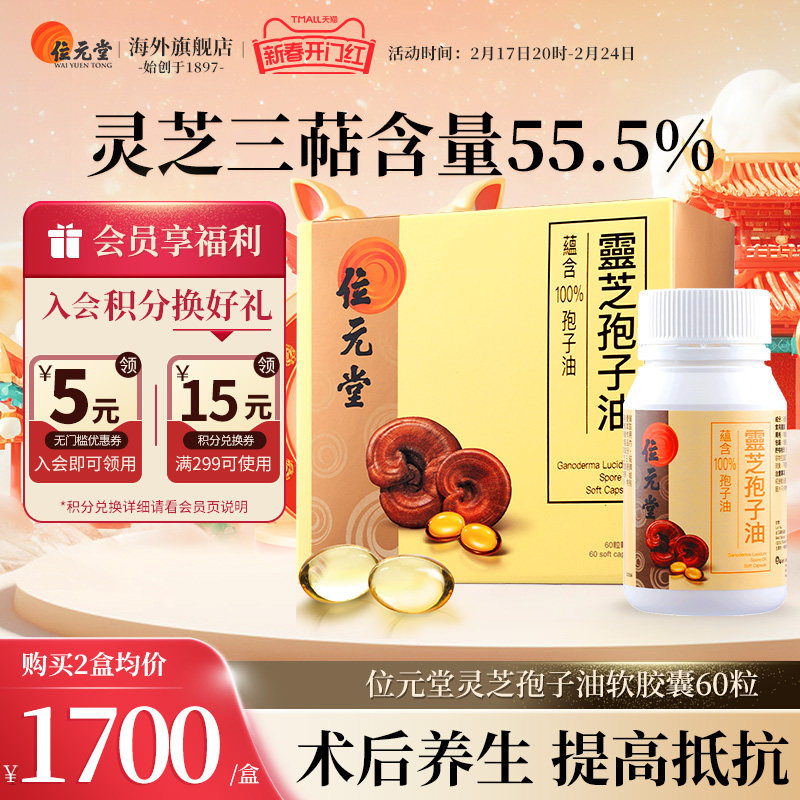 中国香港进口位元堂破壁灵芝孢子油胶囊非孢子粉术后恢复60粒*2盒