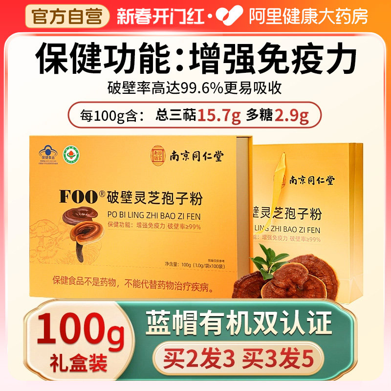 南京同仁堂破壁灵芝孢子粉正品官方旗舰店增强免疫力袍子粉送礼盒