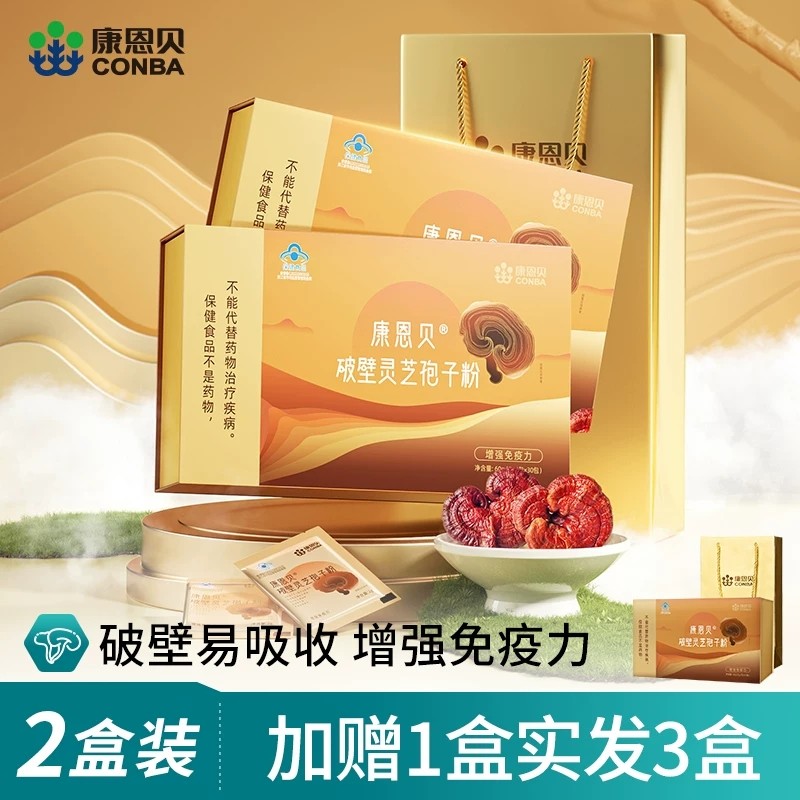 康恩贝破壁灵芝孢子粉增强免疫力非长白山林芝送礼2g*30包