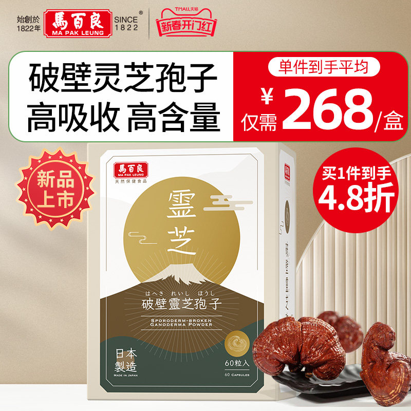 中国香港马百良破壁灵芝孢子粉胶囊姬松茸免疫力官方正品60粒C
