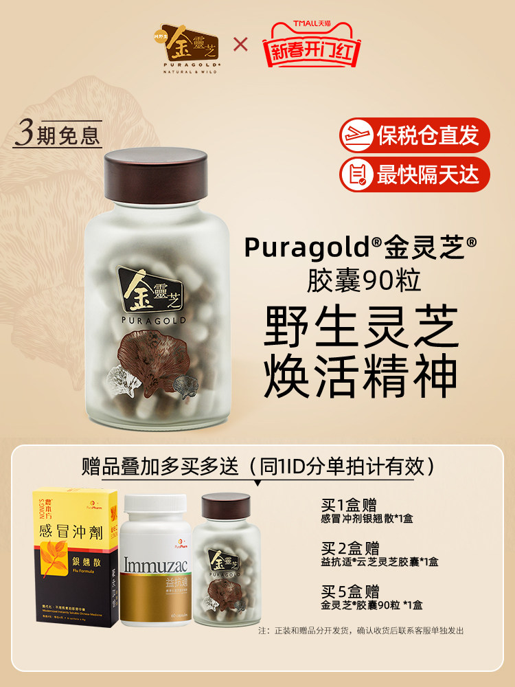 香港Puragold培力官方正品金灵芝特级野生粉赤芝紫芝软胶囊90粒