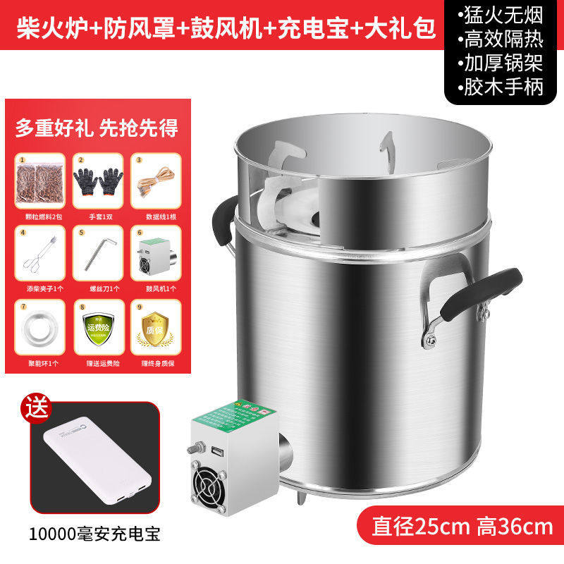 牧火者环保柴火炉户外防风大功率炭炉露营圆形便携不锈钢猛火灶具