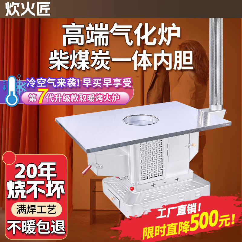 新型柴火气化炉柴煤两用取暖炉农村烤火炉家用柴火炉子烧柴汽化炉