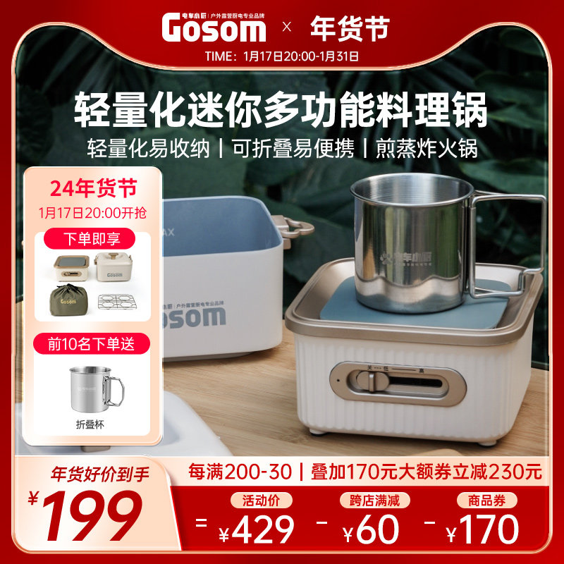 电车小厨野餐料理锅10件套户外炉具套装便携式电煮锅露营带战术包