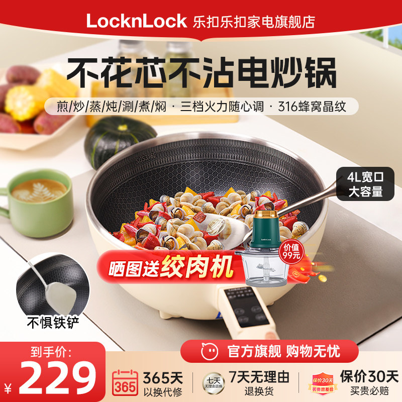 乐扣不花芯电炒锅家用多功能蒸煮电煮锅炒菜电热火锅大容量一体式