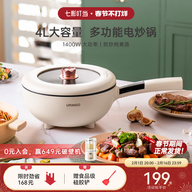 九阳电炒锅多功能家用电炒菜炒锅一体式宿舍不粘锅大功率电火锅4L