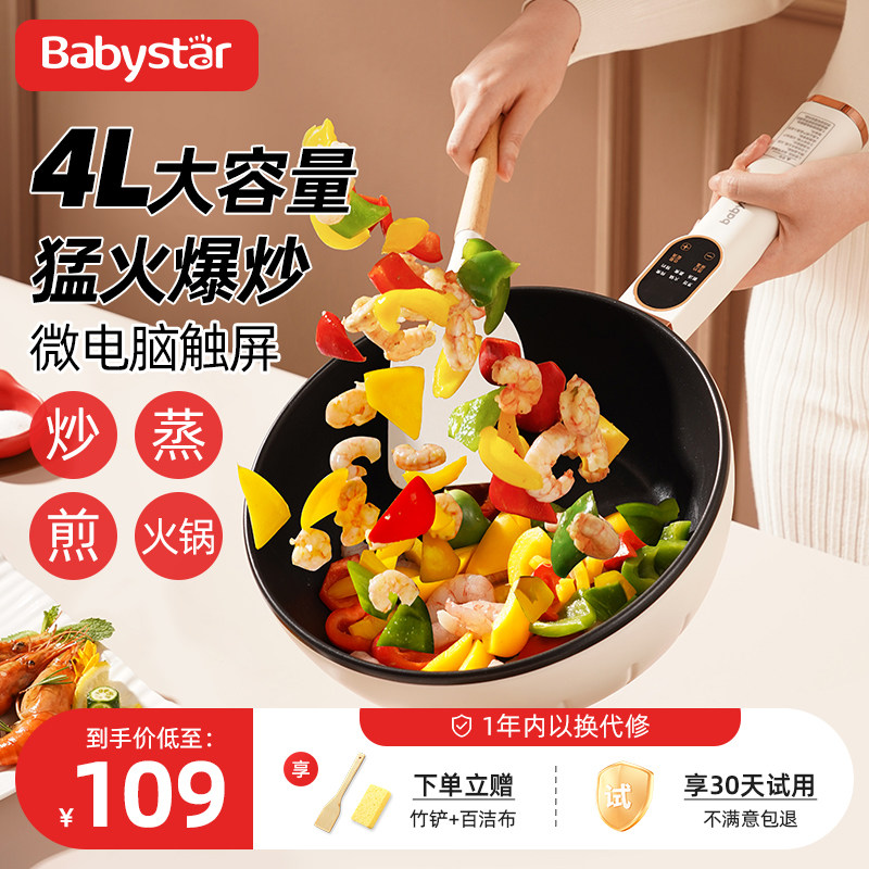 babystar电炒锅炒锅电炒菜家用一体式多功能宿舍蒸煮煎爆炒电锅