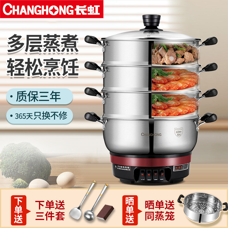 长虹电蒸锅304不锈钢电热锅多功能家用蒸煮炒菜一体式电锅电炒锅