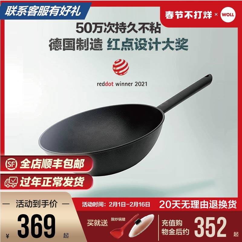 德国WOLL不粘锅炒锅家用炒菜锅麦饭石色锅具燃气灶专用煎炒不沾