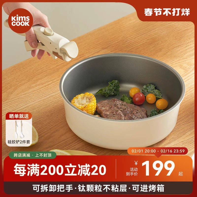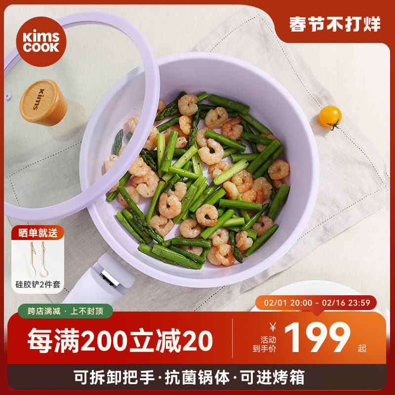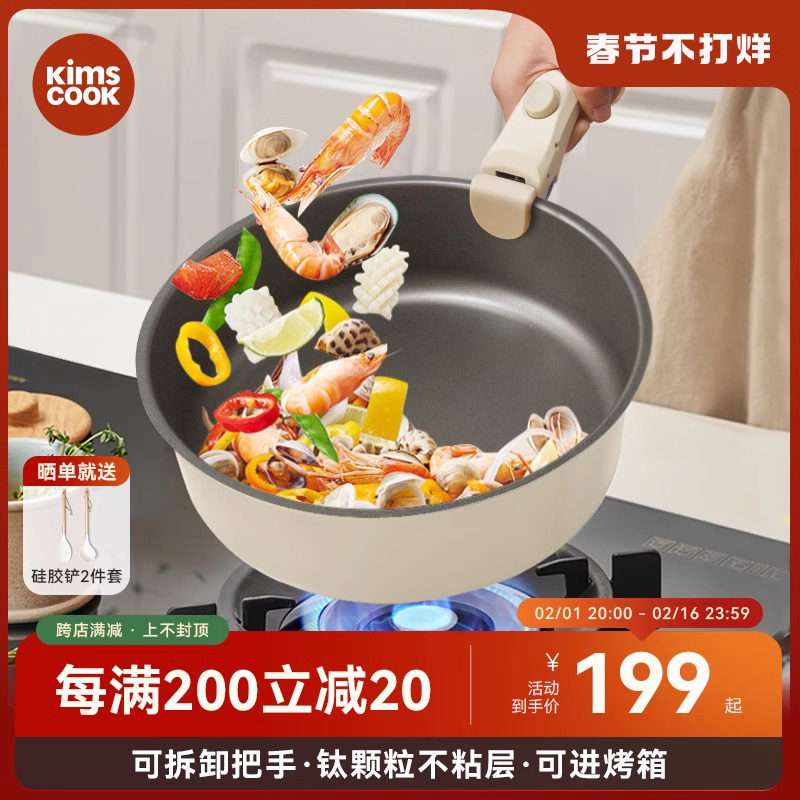 KIMSCOOK家用炒锅平底炒菜锅电磁炉通用锅具陶瓷不粘锅把手可拆卸