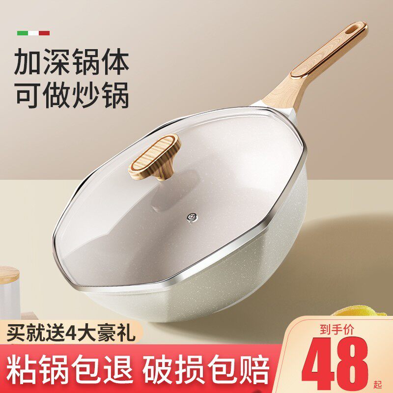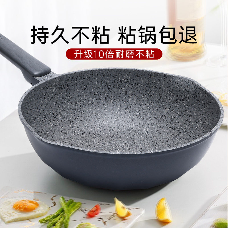 麦饭石不粘锅家用炒锅八角炒菜锅不沾平底锅电磁炉专用燃气灶适用