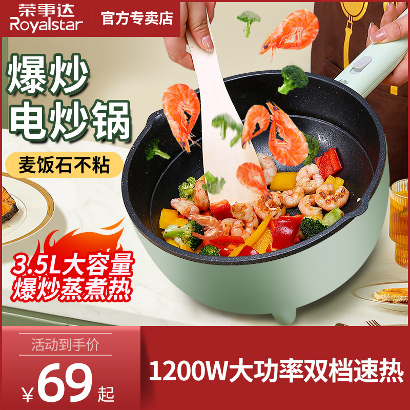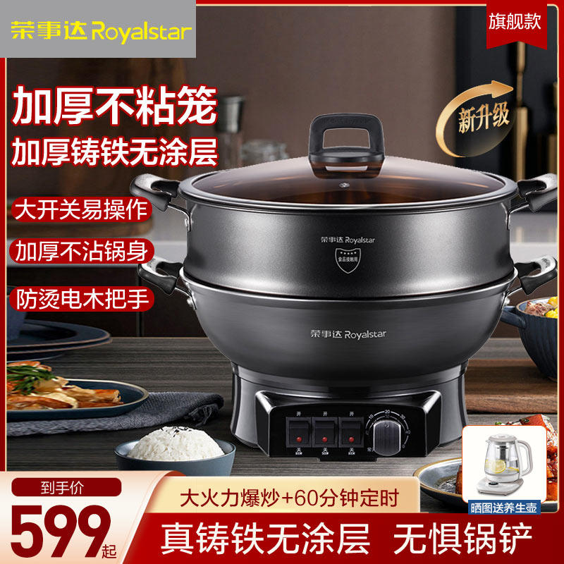 荣事达电炒锅炒菜家用多功能大功率麦饭石一体式不粘锅电热锅煮锅