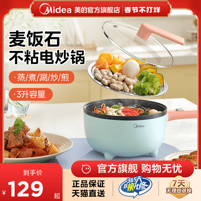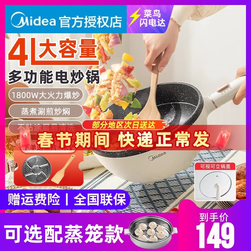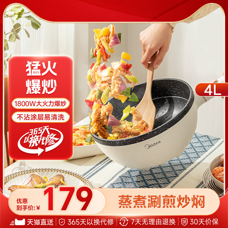 美的电炒锅宿舍学生多功能锅家用电煮锅炒菜火锅蒸煮面小型一体式