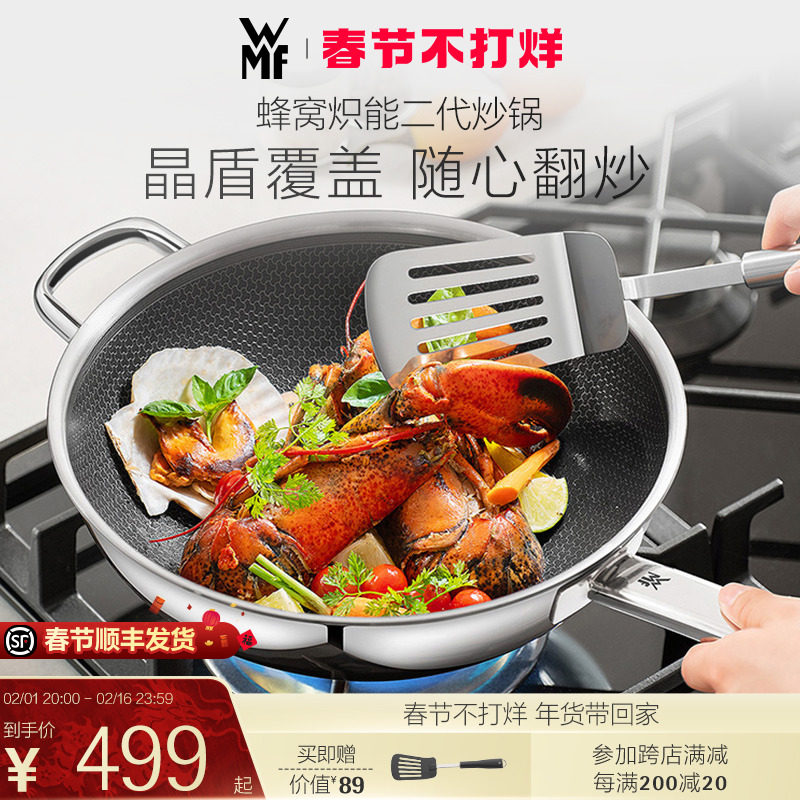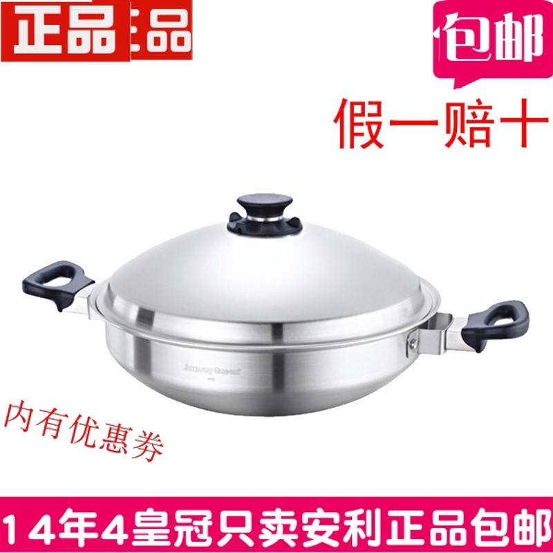 安利官网正品皇后中式不锈钢炒锅炒菜锅 金锅敞开式厨房少油烟