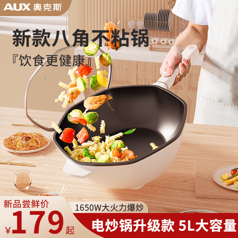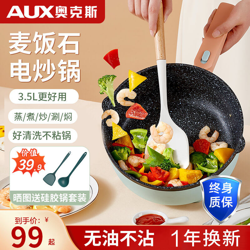 奥克斯电炒锅家用宿舍学生锅多功能电炒菜炒锅一体式炒蒸煮不粘锅
