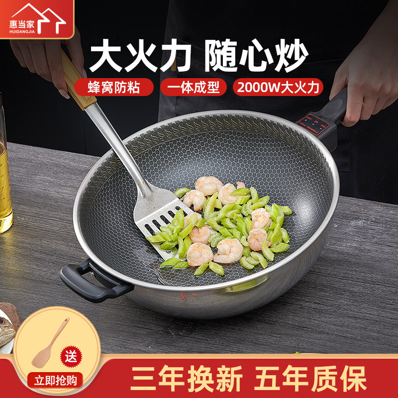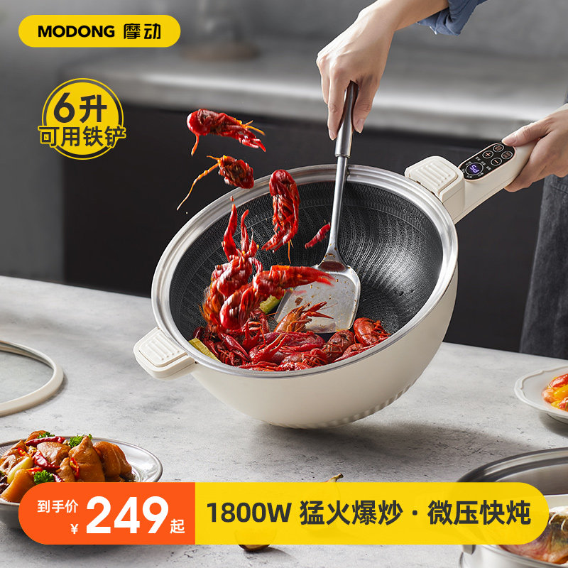 2024年新款电炒菜炒锅一体式家用多功能微压锅 304不锈钢无涂层6L