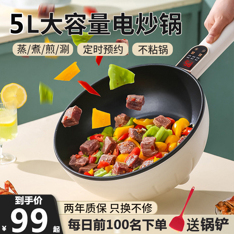 新款电炒菜炒锅家用电煮锅多功能火锅宿舍小型电锅蒸煮煎炒一体锅