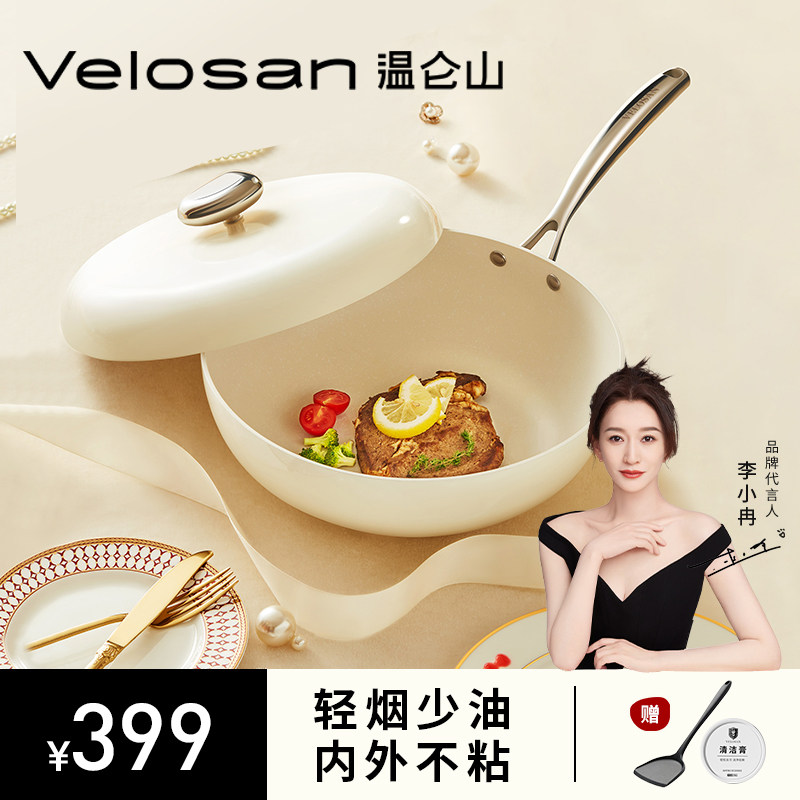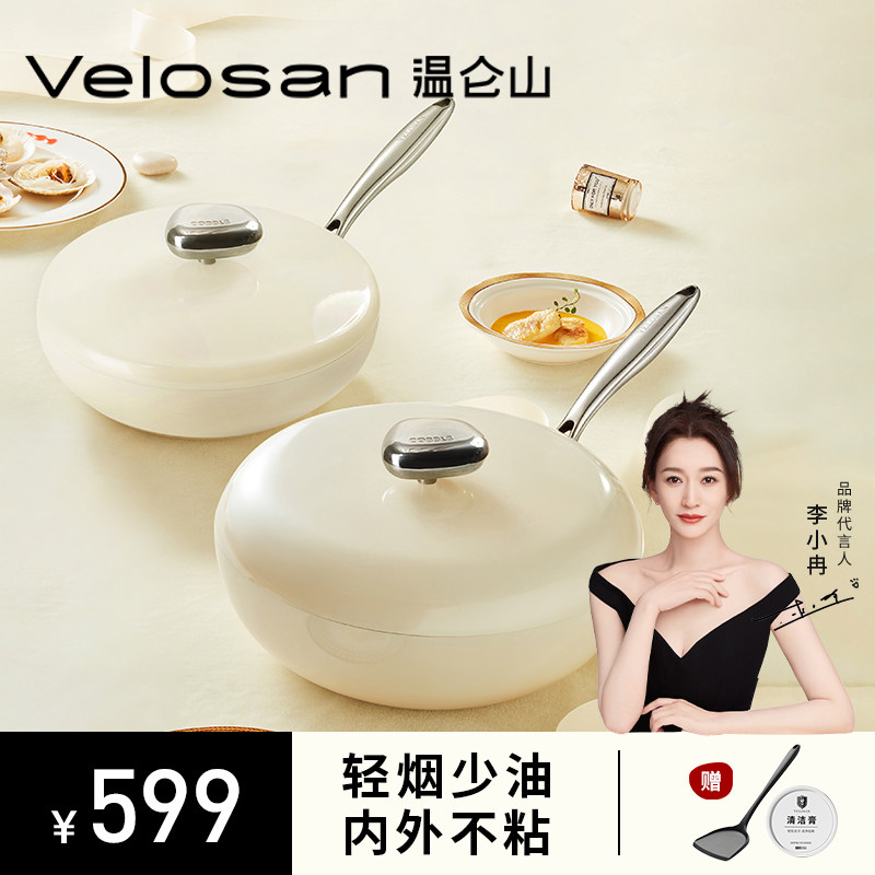 温仑山velosan鹅卵石煎炒锅二件套装不粘锅家用电磁炉燃气灶通用