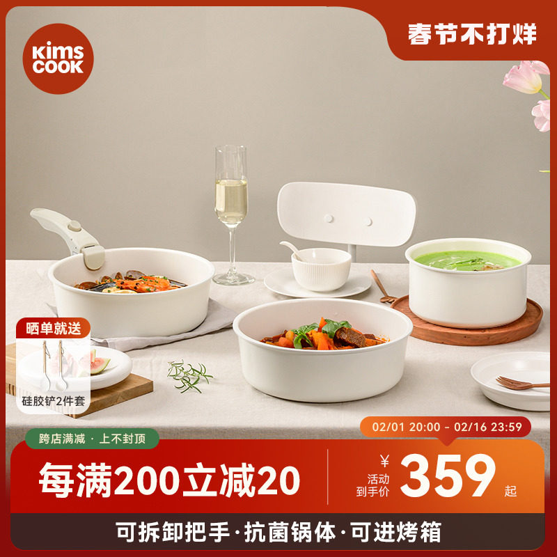 kimscook锅具套装小白锅炒锅套组厨房平底锅不粘锅全套家用两件套