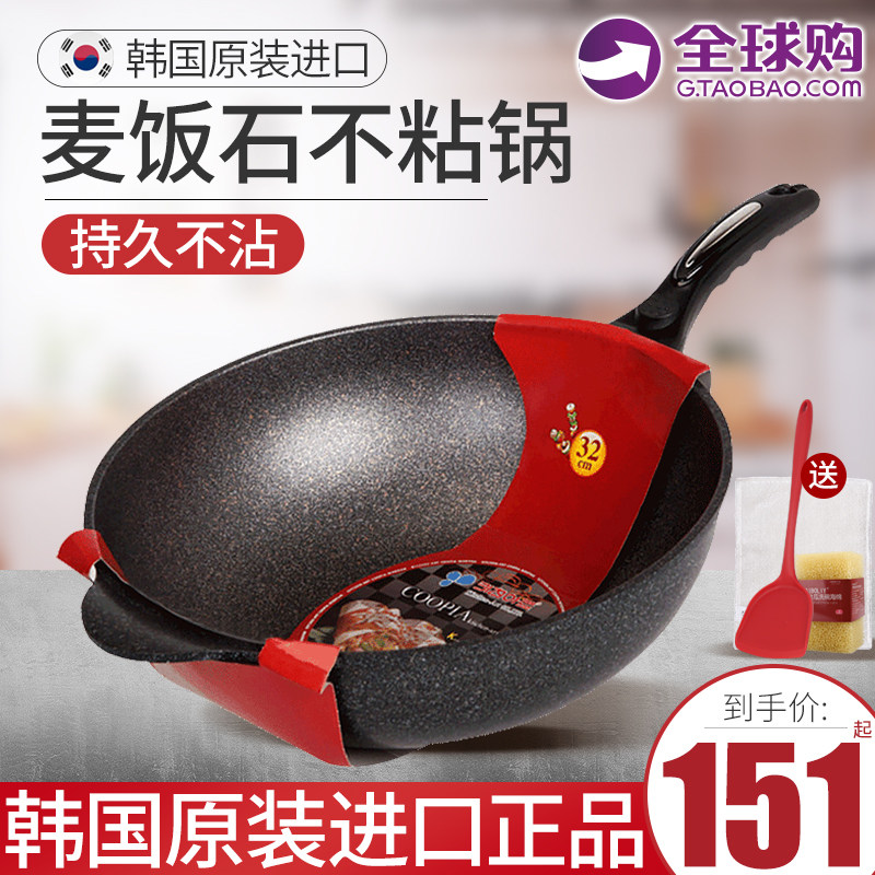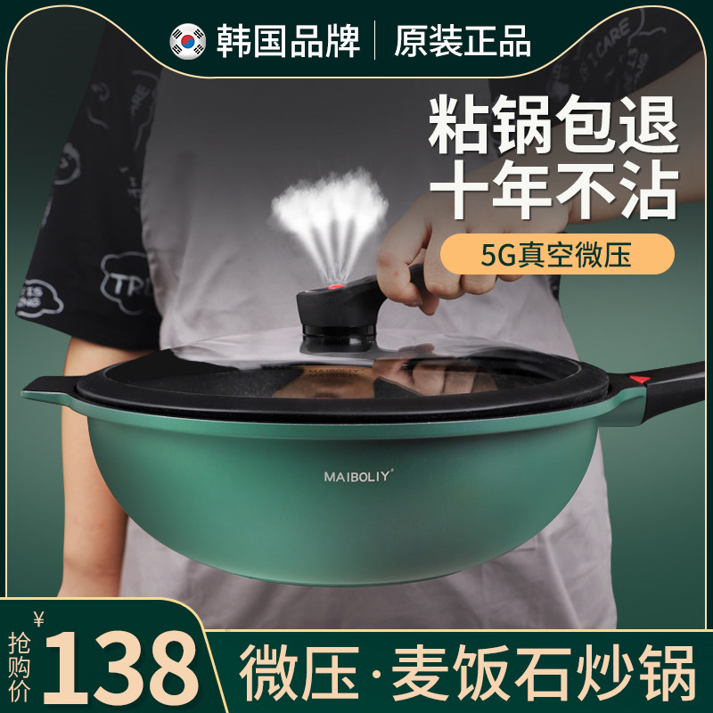 微压不粘锅炒锅麦饭石家用平底锅无涂层微压锅麦石锅韩国麦饭石锅