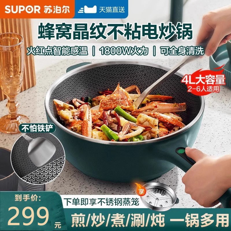 苏泊尔电炒锅一体式多功能家用电炒菜炒锅炸煮煎不粘锅官方旗舰店