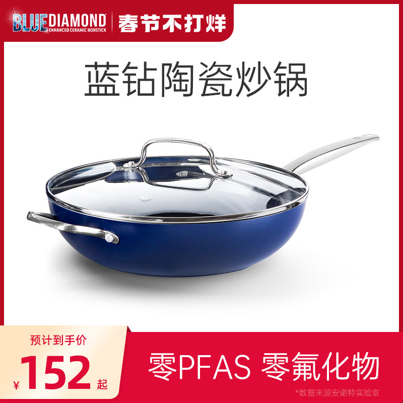 蓝钻不粘锅钻石陶瓷涂层炒锅家用无烟燃气灶专用电磁炉平底炒菜锅
