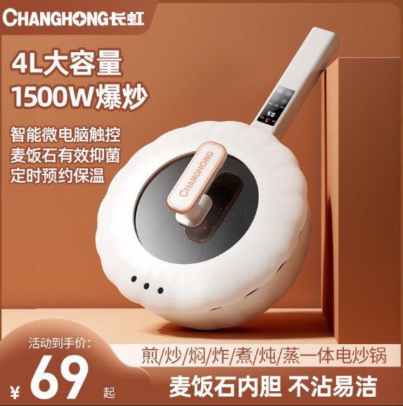 长虹电炒锅铸铁加厚多功能电热锅家用蒸煮炖一体式插电炒菜锅电锅