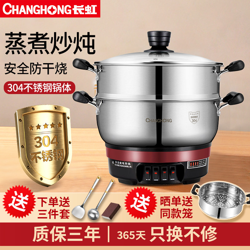 长虹304不锈钢电炒锅多功能电热锅家用电蒸煮炒菜一体式加厚电锅