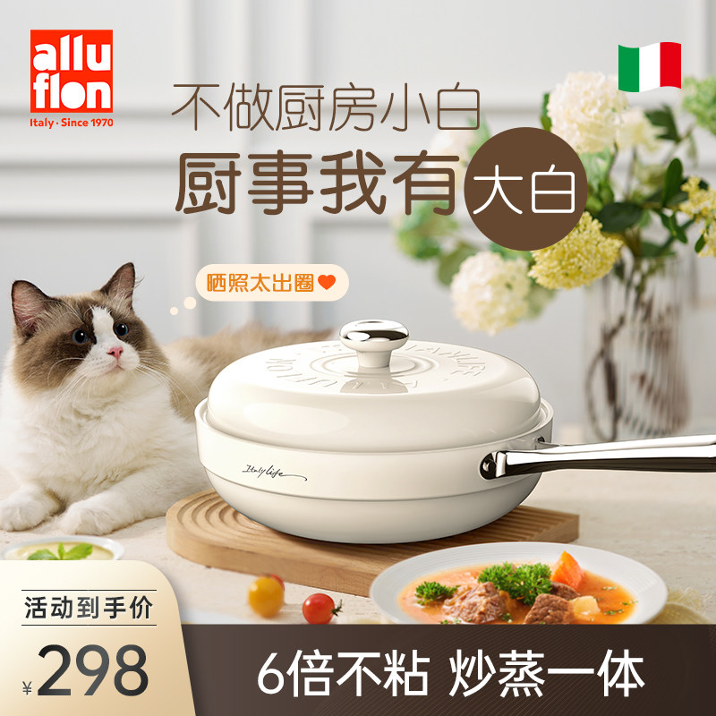 Alluflon阿尔贝罗大白锅不粘锅炒蒸一体炒菜锅家用炒锅电磁炉适用