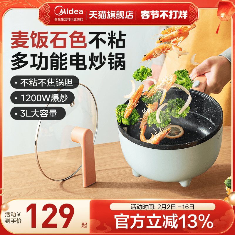 美的电炒锅炒菜家用多功能炒锅火锅宿舍学生锅蒸煮一体式电煮锅