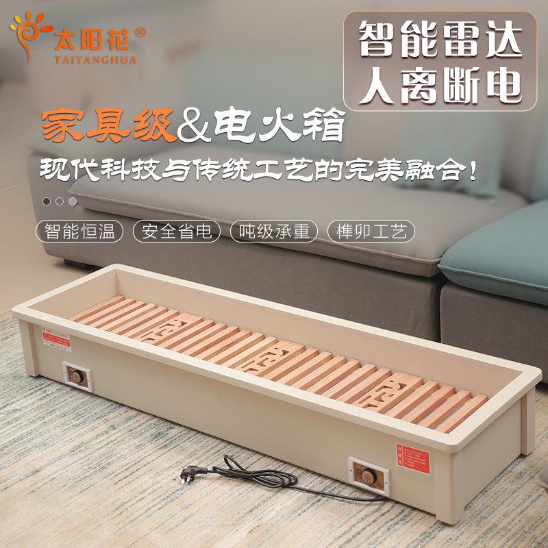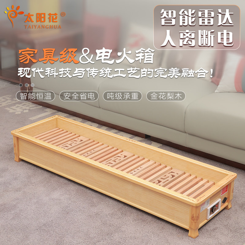 太阳花实木取暖器家用烤脚电火箱烤火炉烤火箱长方形火桶烤火器1