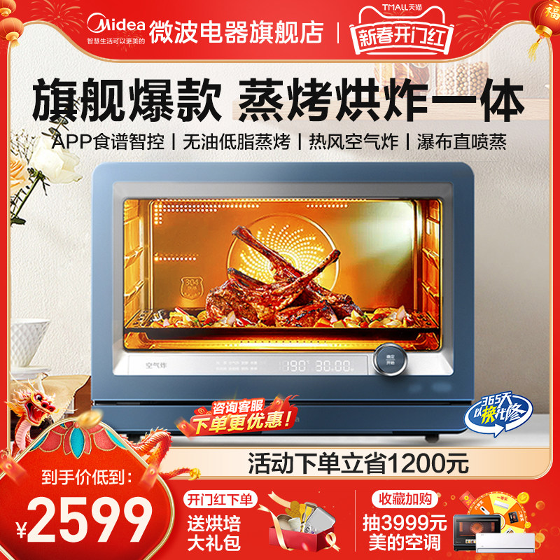 美的台式蒸烤箱家用蒸烤烘炸一体机可视化空气炸锅电烤箱S5-fry